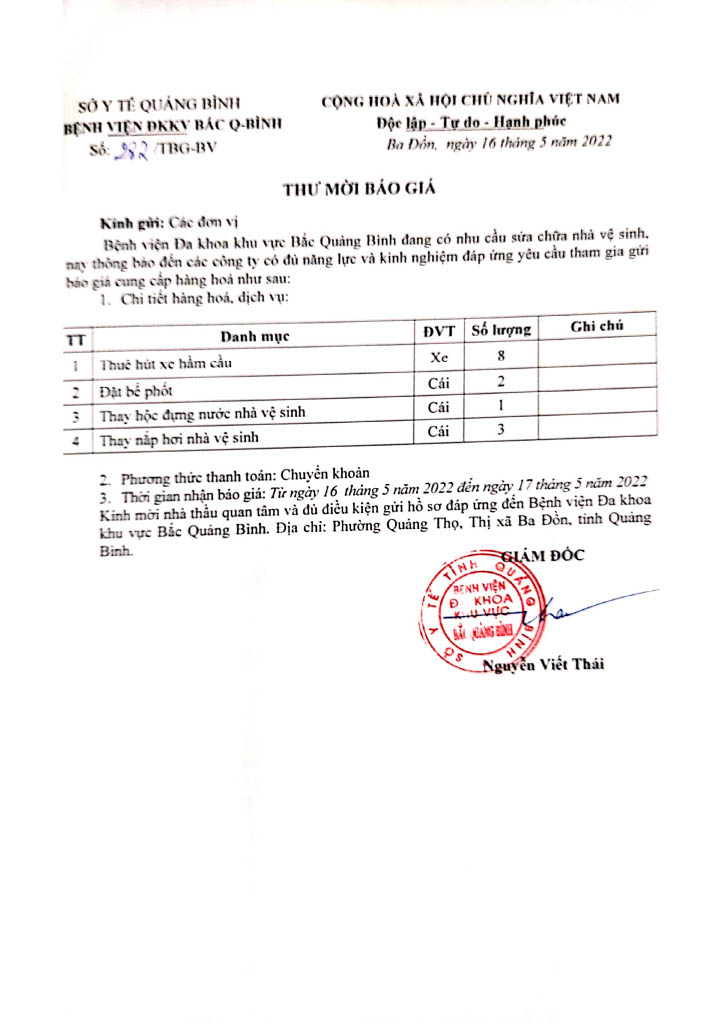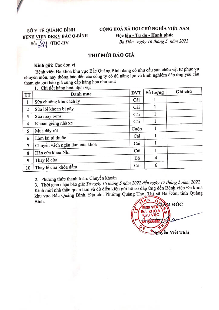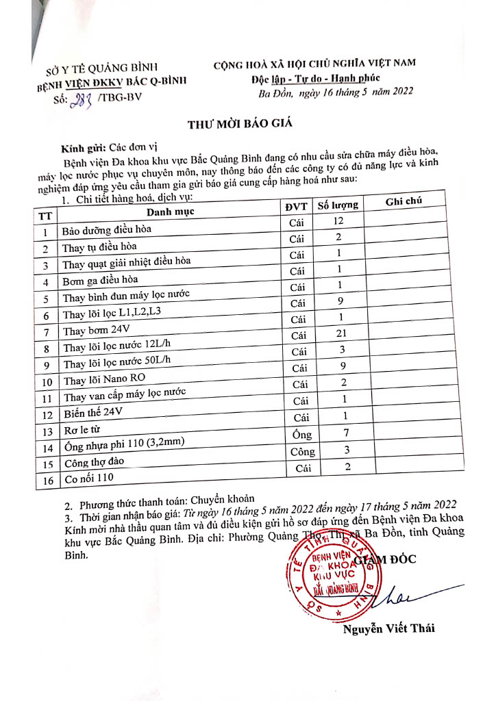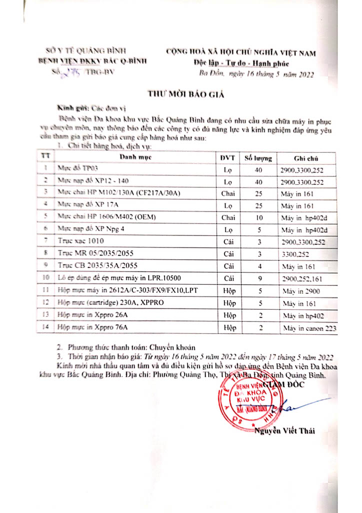 - Thư mời báo giá