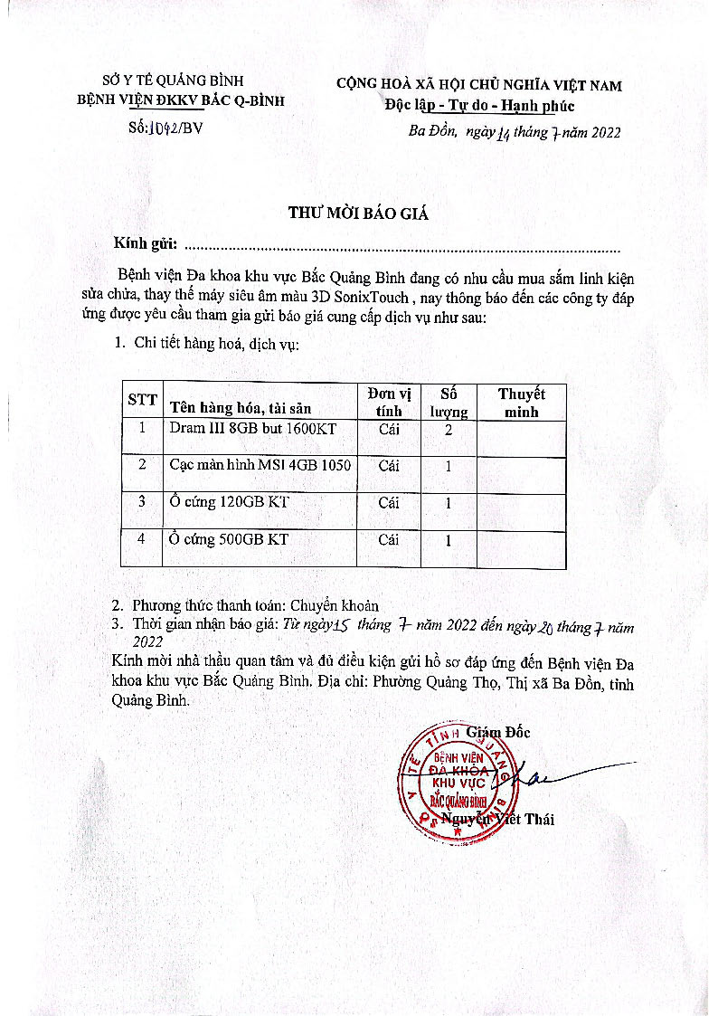 - Thư mời báo giá