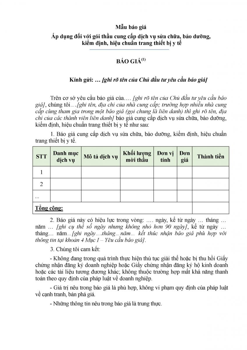 + Thư yêu cầu báo giá trang thiết bị y tế